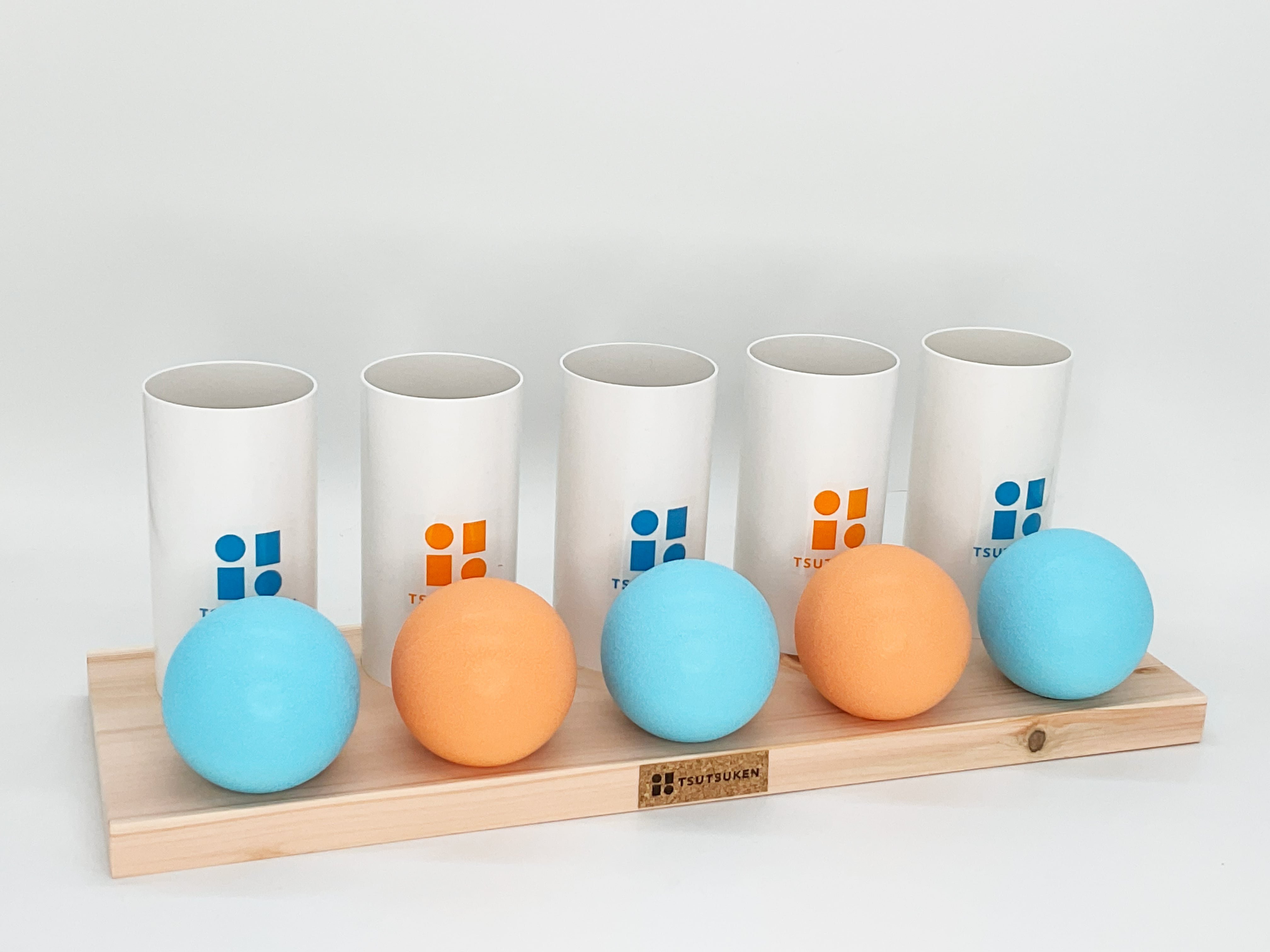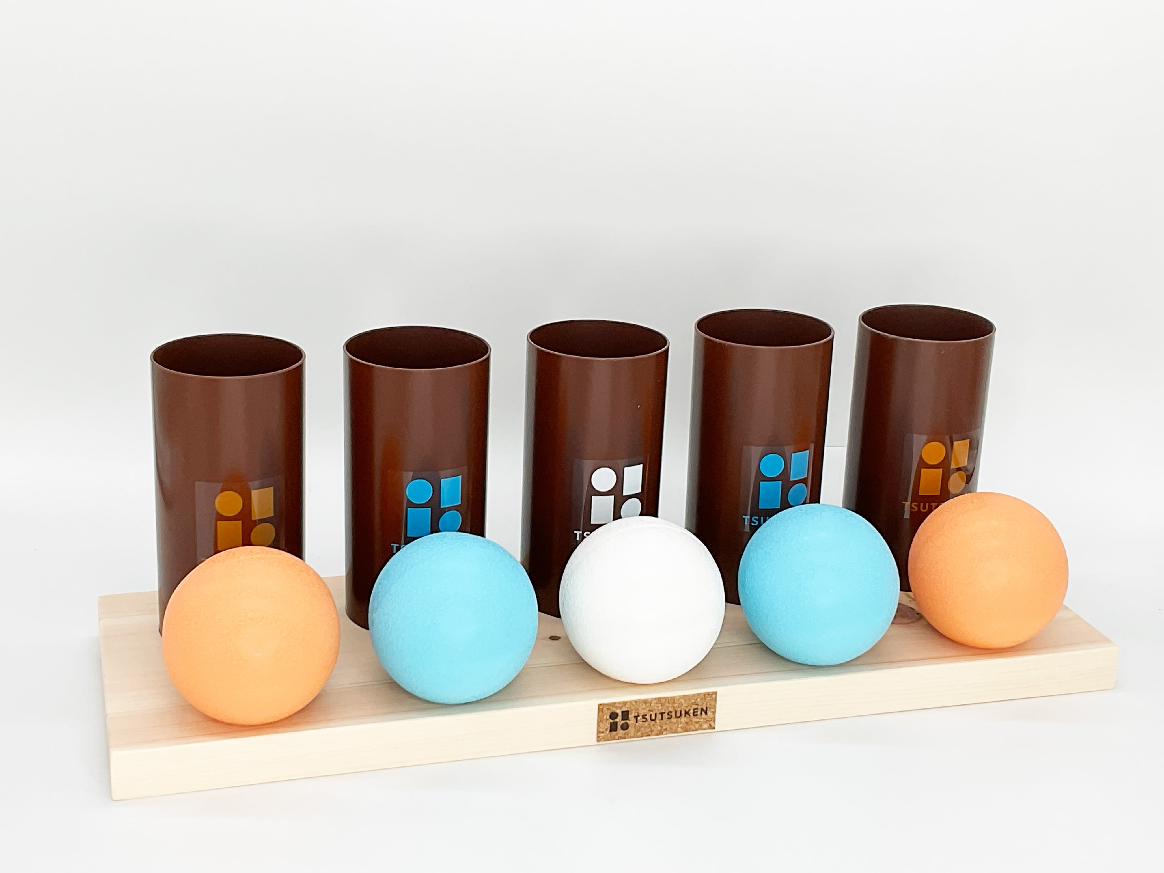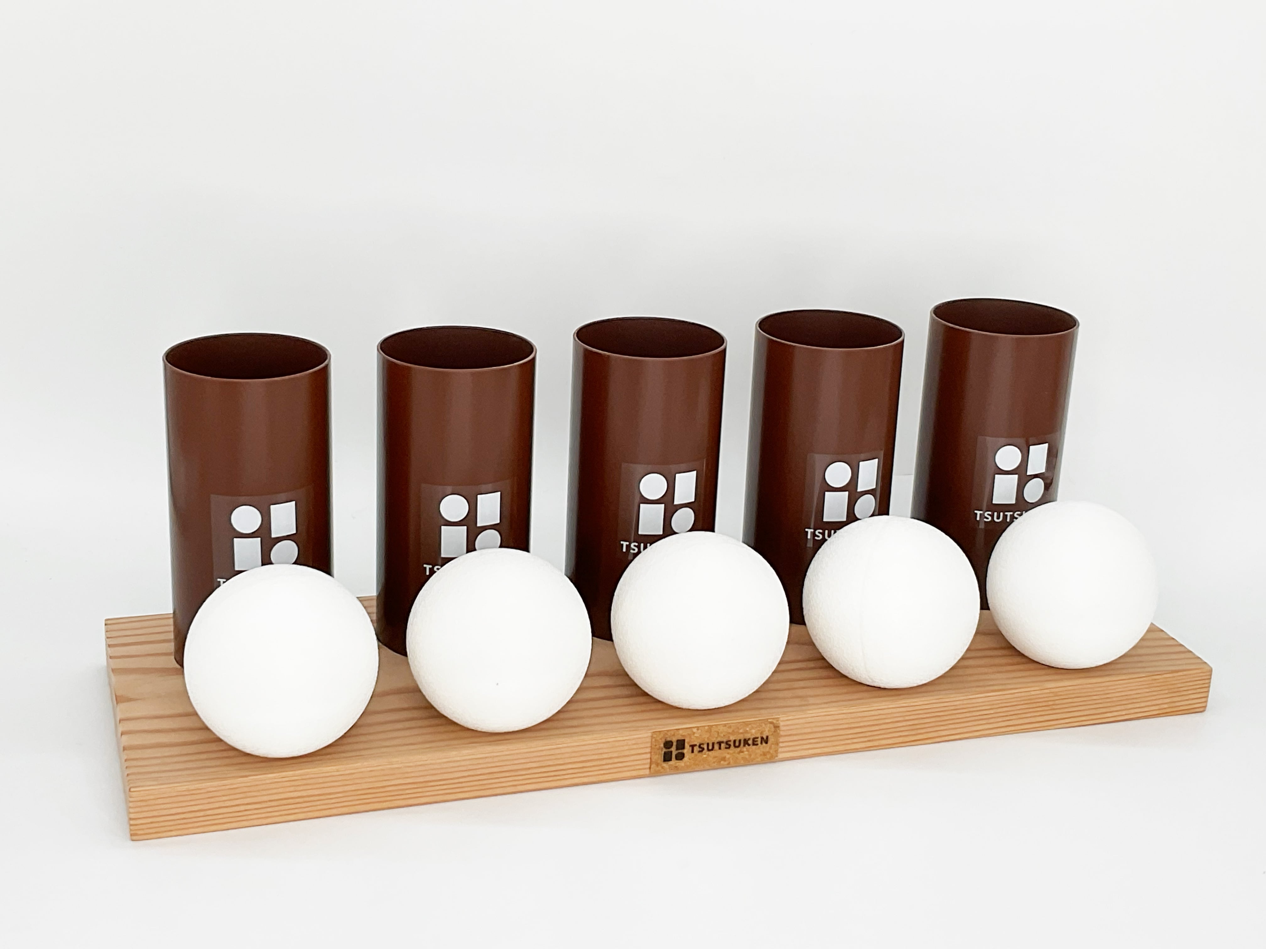 5連筒けんセット内容:筒(ショート)5個、玉5個、5連筒けん用台座